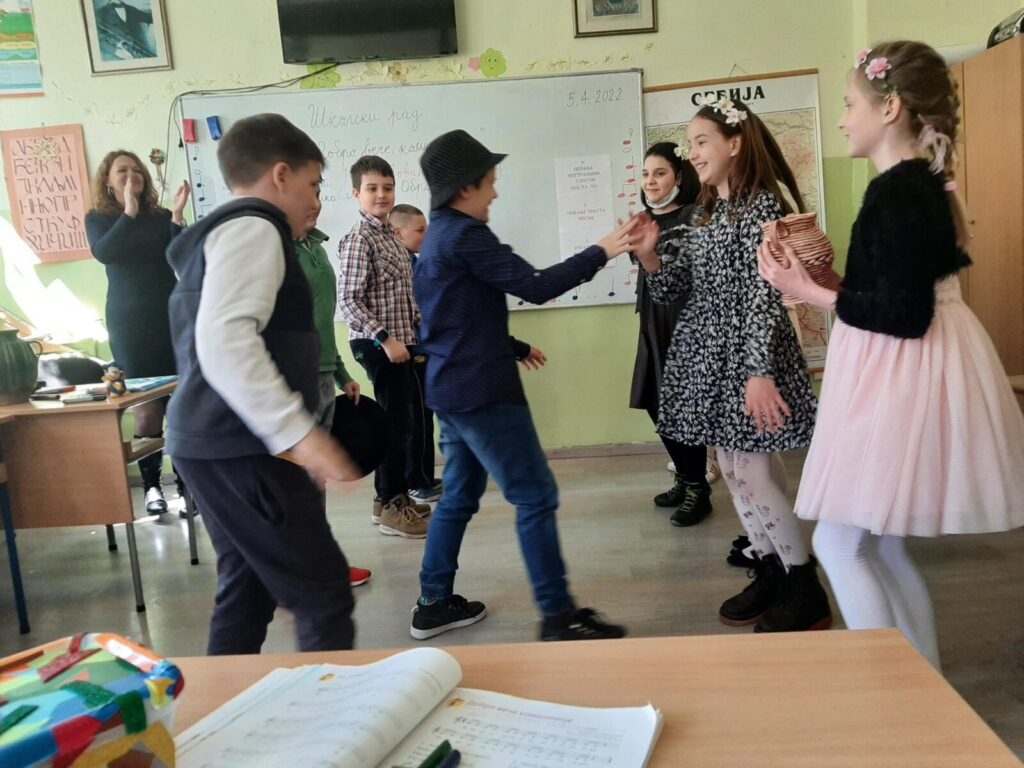 У завршном делу часа, деца су свој доживљај песме дочарала драматизацијом кроз игру са елементима народног фолклора.