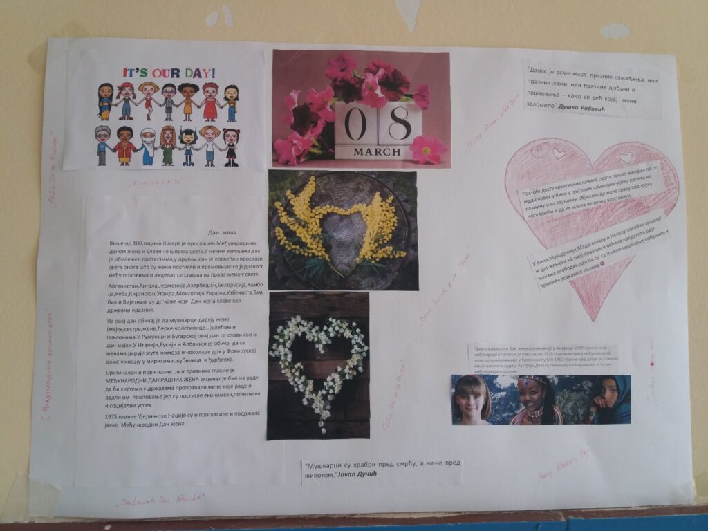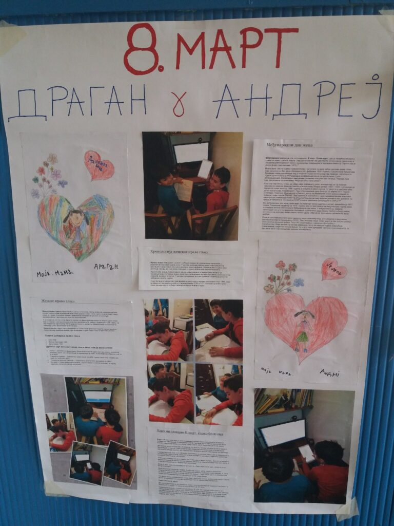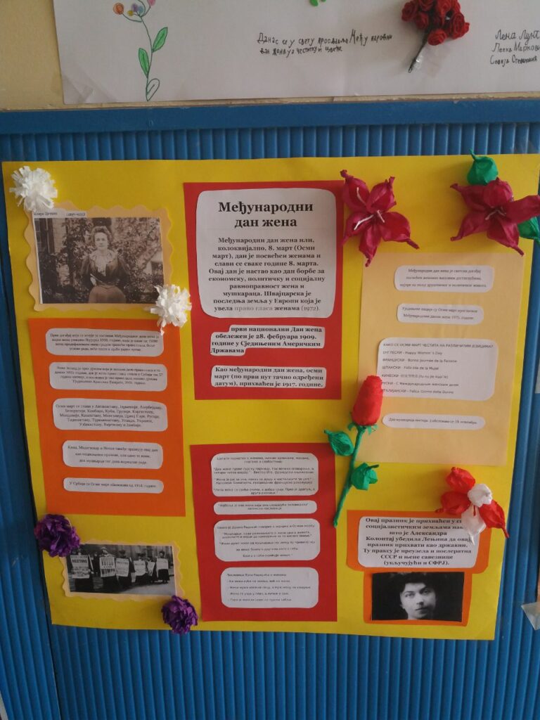 На часовима Пројектне наставе у фебруару и марту, Актив учитеља првог разреда је реализовао пројекат „Моја мама“. Осим што су сазнали многе занимљивости везане за Међународни дан жена, ђаци су уз помоћ родитеља направили и дивне плакате.