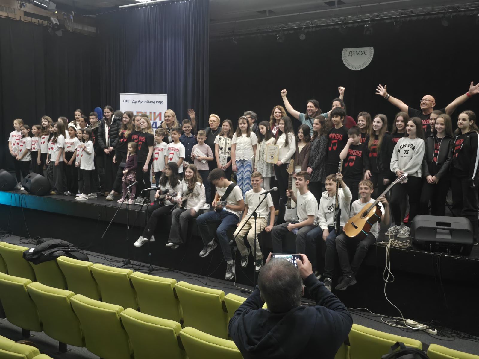 На градском такмичењу малих инструменталних састава и оркестара основних школа Београда – ДЕМУС, одржаном 20. априла 2026. године у Дечјем културном центру, ученици одељења 4/4 остварили су изузетан успех освојивши прву награду.