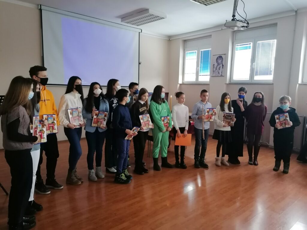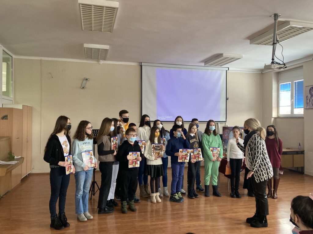 „У приредби за млађе разреде су учествовали: Андреј Стијепић 3/1, Миа Димитријевић 3/2, Огњен Ранђеловић 3/3, Лара Блажевић 4/1, Сара Десанчић 4/2, Вид Досен 4/4 и Дуња Думић 4/5. Старије разреде су представљали: Дуња Марјановић 5/2, Михајло Јовић 5/2, Лана Благојевић 7/3 и Ена Ђермановић 7/3, којима је помогла наставница српског језика, Ана Јовановић.“ казала нам је наставница Данка Шпехар, која је била главни организатор приредбе.