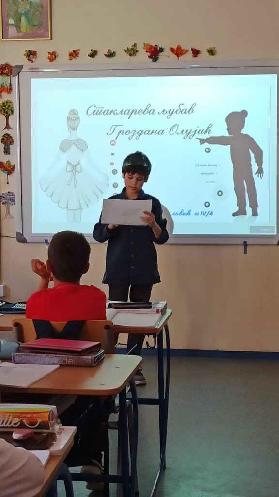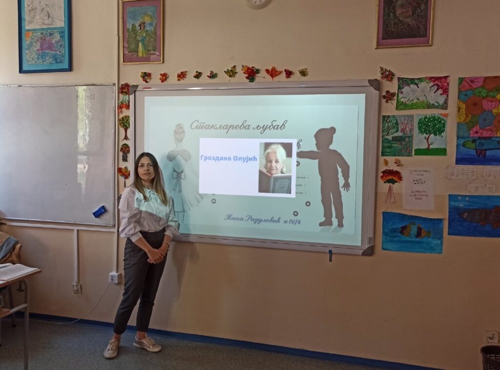 У IV/4 одржан је угледни час из српског језика „Стакларева љубав“-Гроздана Олујић. Акценат је стављен на коришћење ИКТ-а у настави.