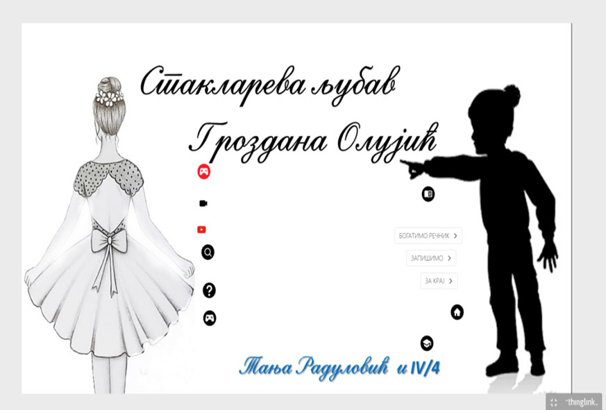 Thinglink , Learningapps, Wordwall, Genially, Canva и Youtube. Примарно наставно средство је била интерактивна табла. У уводном делу часа ученици су уз помоћ интерактивне табле решавали укрштеницу и подсетили се основних одлика бајке. Уследила је анализа непознатих речи, анализа бајке, богаћење речника, самосталан рад ученика, колективна провера и систематизација уз помоћ интерактивних игара. На крају часа ученици су користећи таблете гласали да ли им се час допао.