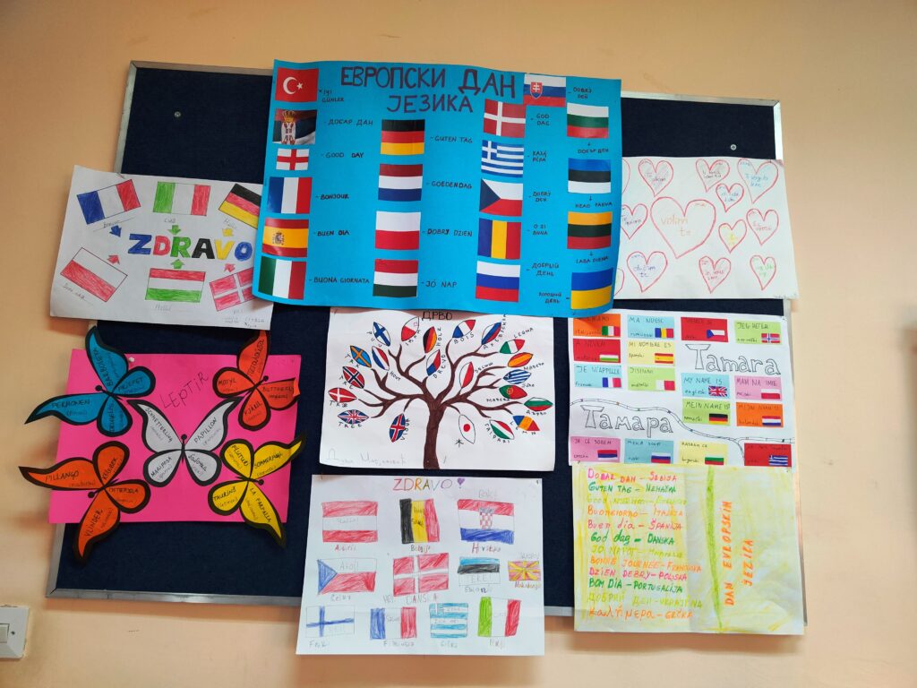 На часовима српског језика обележен је Светски дан језика. Ученици су са наставницом Аном Јовановић посебну пажњу посветили језицима који се говоре у Европи, разврстали су их у породице и на крају недеље посвећене језицима уредили пано.