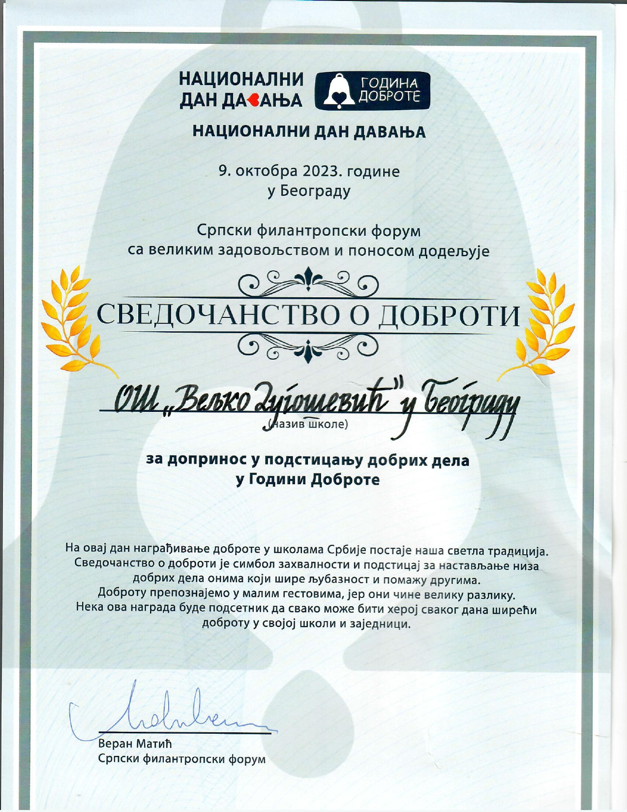 12/27/2023 - In Актуелности By Zola 0 Ученици, запослени, родитељи ОШ“Вељко Дугошевић“, ово је признање за све нас! Претходни ДАН ШКОЛЕ Следећи Интервју са Браниславом Панић