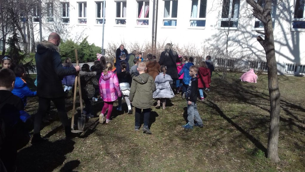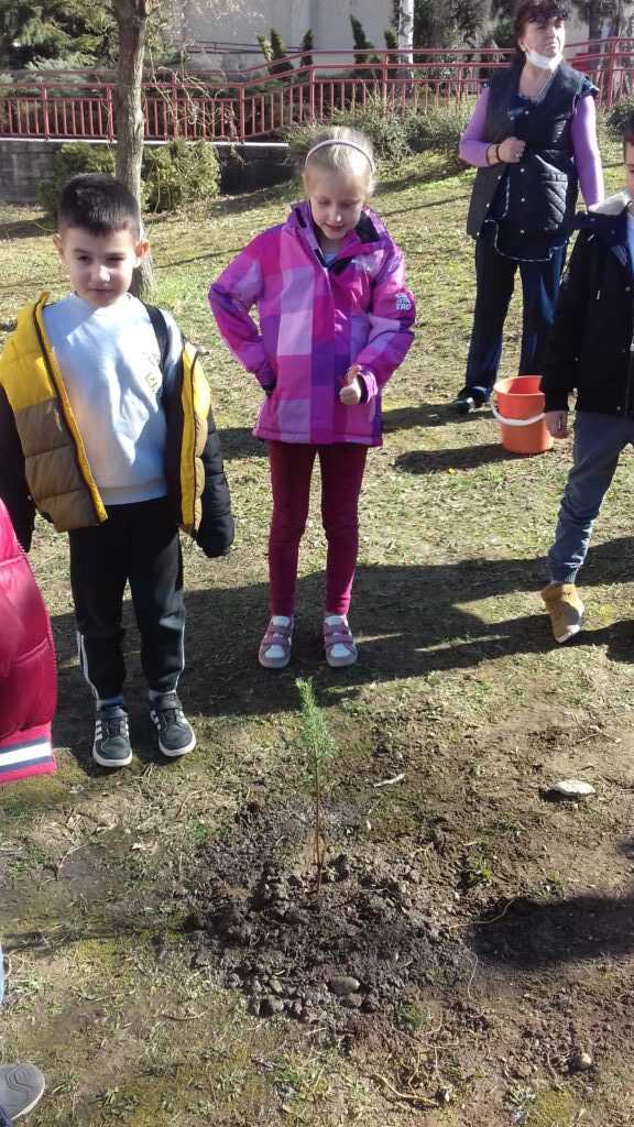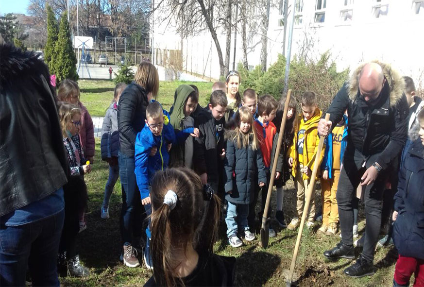 Добили смо нове саднице дрвећа за школско двориште. Садња је била узбудљив догађај за прваке. Дрвећу су чак и имена давали. Заједно ће расти.